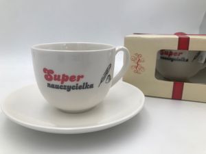 Wymiary filiżanki:wysokość: 6 cmśrednica: 9 cm średnica spodka: 14,3 cm